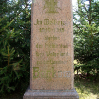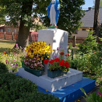 Obok kościoła znajduje się pomnik w kształcie obelisku poświęcony mieszkańcom wsi poległym w I wojnie światowej. Zapewne pierwotnie był ustawiony na podstawie po drugiej stronie kościoła, gdzie aktualnie stoi figura Maryi. Czytelna lista poległych.