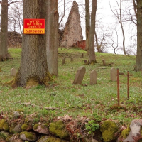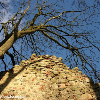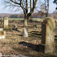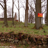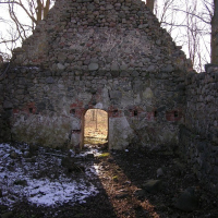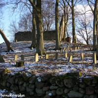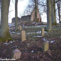 Na wysokim wzniesieniu - ruina kościoła z XVIII w. oraz cmentarz.