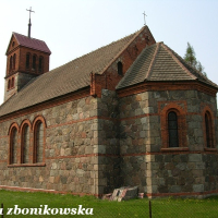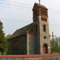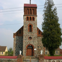 Kościół filialny p.w. Podwyższenia Krzyża Świętego z XIX w. neoromański, z kostki kamiennej i cegły.