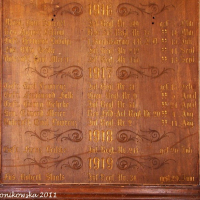 W kościele znajduje się tablica poświęcona mieszkańcom wsi poległym w I wojnie światowej.