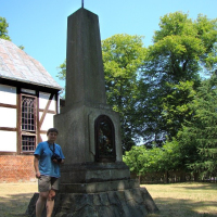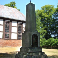 Obok kościoła znajduje się kamienny postument – pomnik poświęcony mieszkańcom wsi poległym w I wojnie światowej, przebudowany na kapliczkę. Nazwiska poległych są zatynkowane, ale część jest możliwa do odczytania.