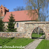 Kościół filialny p.w. Niepokalanego Serca NMP z XIII, XIX w., zbudowany z kwadr granitowych, w XIX w. dobudowano wieżę. W kamiennym murze otaczającym teren przykościelny – 2 bramy z XIV w. Obiekt zabytkowy - nr rej.: 156 z 1.08.1956 r.