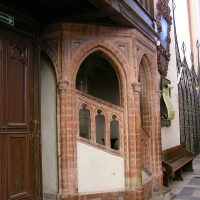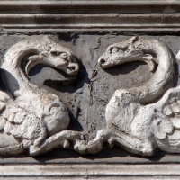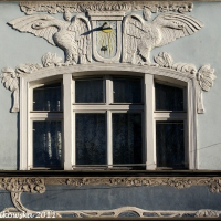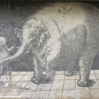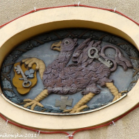 Sgrafitto przedstawiające słonia znajduje się na kamienicy przy Rynku.