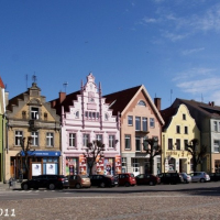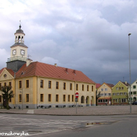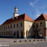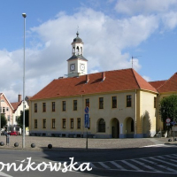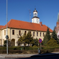 Ratusz Miejski z 1701 r. znajduje się w centrum rynku, otoczony z czterech stron kamienicami. Został wybudowany z cegły., na miejscu XV w. budowli, z której zachowały się trzy gotyckie arkady po stronie zachodniej.