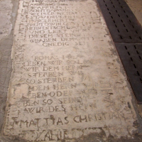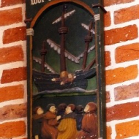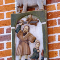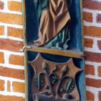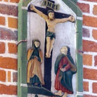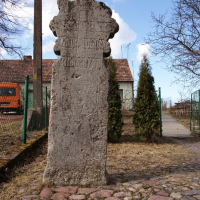 Krzyż pokutny – 2 m wysokości płyta kamienna z XVI w. z wyrytym napisem i zarysem głowy barana. Krzyże pokutne są rzadko spotykane na Pomorzu. Ustawiane były na miejscu popełnienia zbrodni.