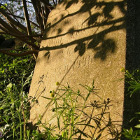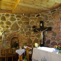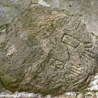W południowej ścianie znajduje się kamień, na którym wyryto dwie dłonie.