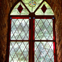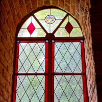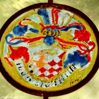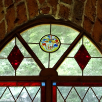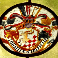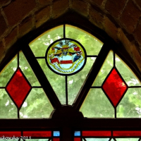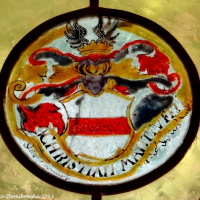 W oknach po stronie południowej znajdują się trzy małe witraże z herbami podpisane nazwiskami: Lorentz Stojentin, Hans Stojentin, Christian Manteuffel.